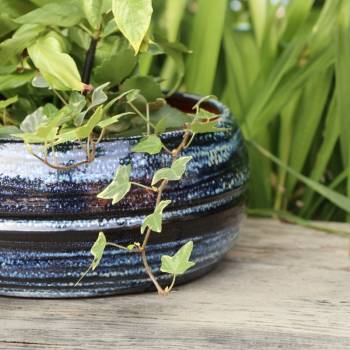 Pot en terre cuite rond et large en forme de U Cancale gris Graphique
