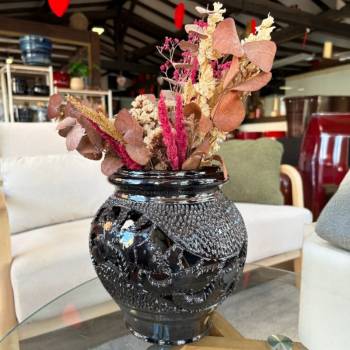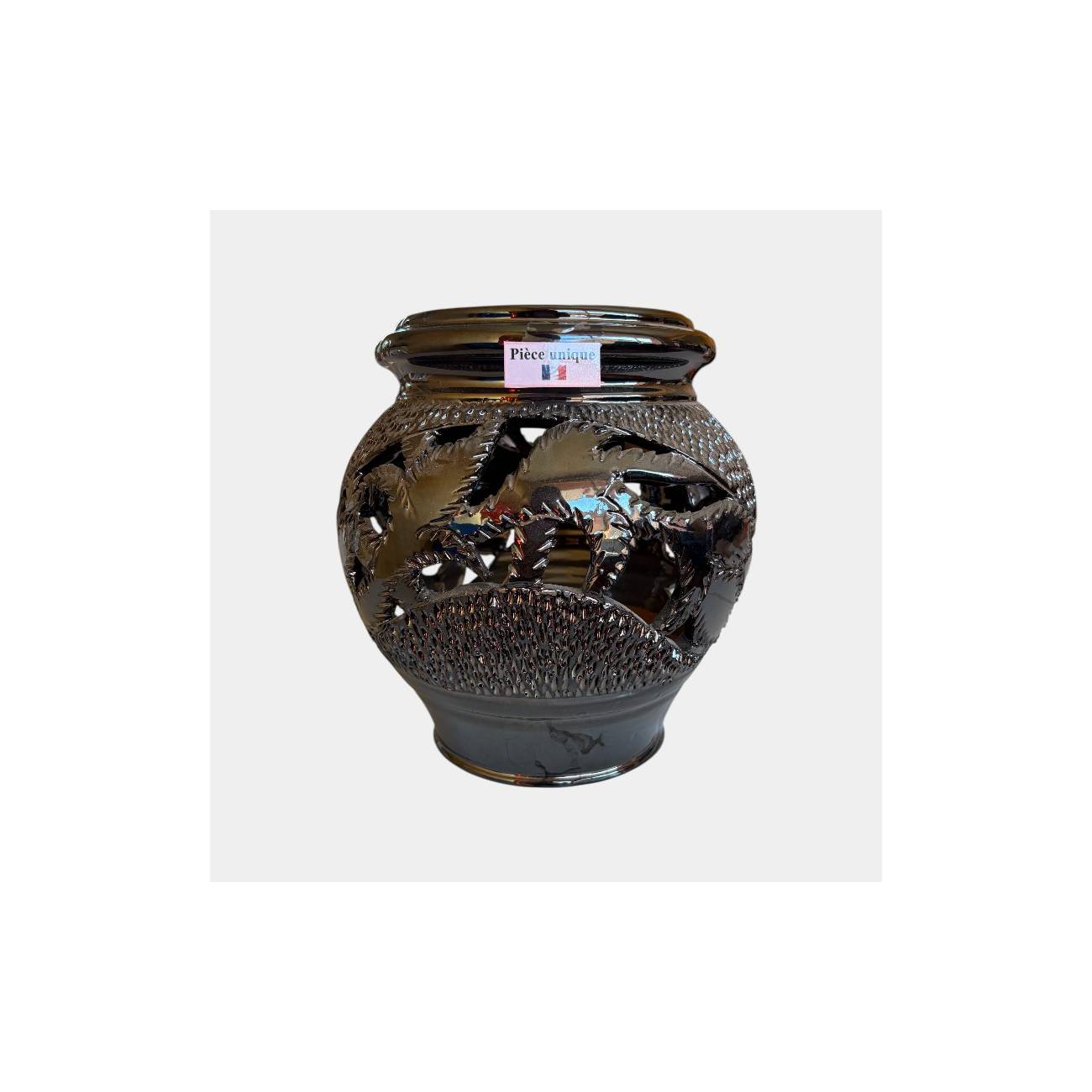 Poterie d'exception noir brillant Métal ajourée