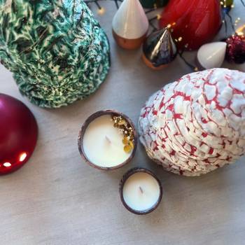 • Notre contenant étant en argile, matière vivante et poreuse, nous vous conseillons de placer un peu de feutrine - PVC - dessous de verre ou un support sous votre bougie afin de ne pas risquer de tâcher votre support.